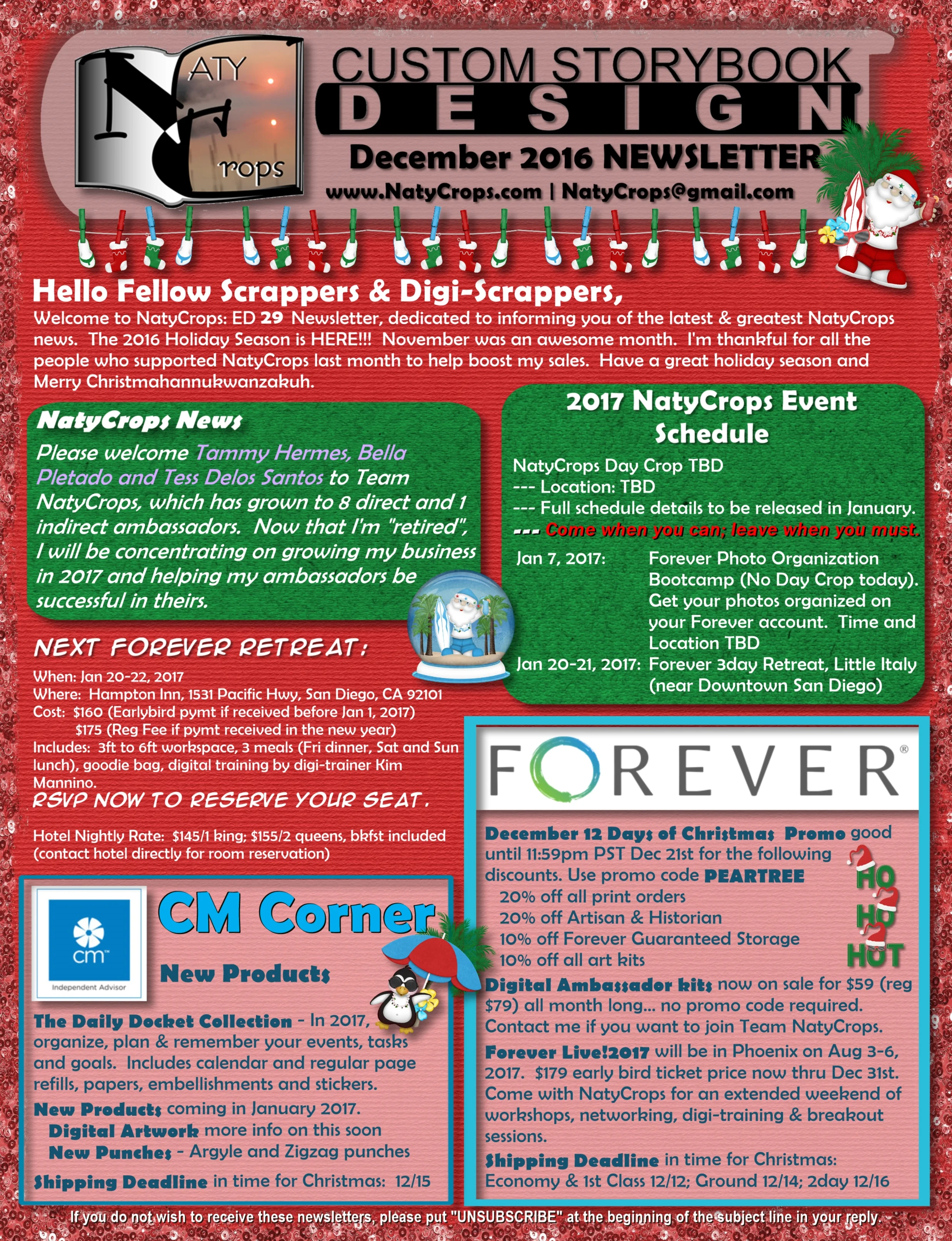 Natalie Endozo December 11, 2016 NATYCROPS NEWSLETTER ED29: 2016 DECEMBER Natalie Endozo December 11, 2016 Updated the header with correct month.